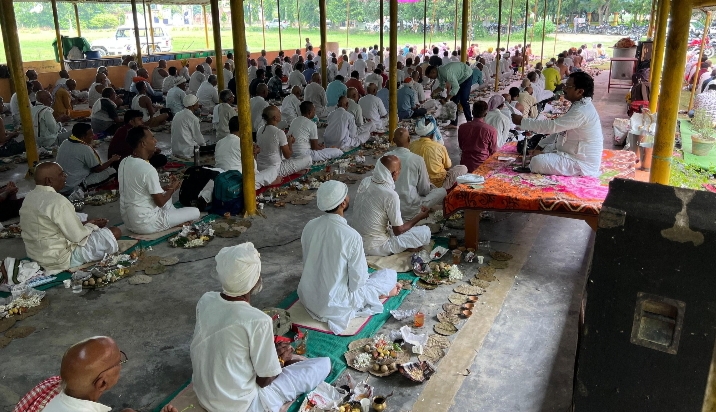 तथा जिसे कोई परेशानी या असुविधा हो उसके लिए सभी आश्रमों पर विद्वान ब्राह्मणों को बुलाकर सभी का विधि पूर्वक सामूहिक श्राद्ध कर्म कराया जाता है। उसी के तहत रविवार को अनौरा आश्रम पर सैकड़ों साधकों ने श्रीमद्भागवत गीता का पाठ होने के बाद अपने पितृों की सद्गति के लिए तर्पण तथा श्राद्ध आदि कर्म किया।