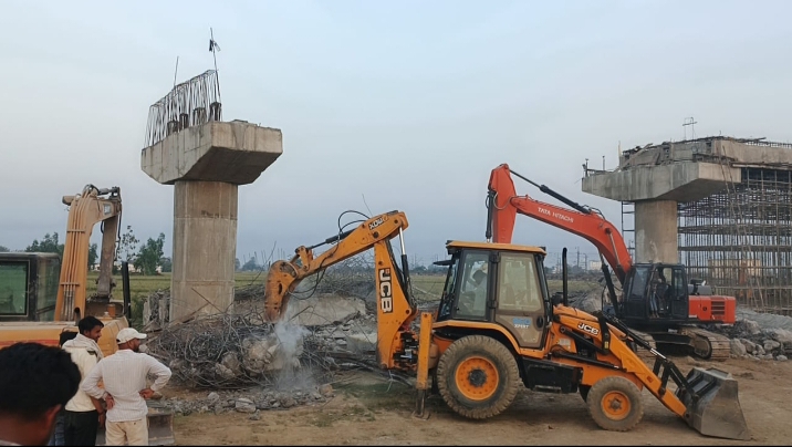 विधायक भी भाजपा के हैं। फिर भी ऐसी घटना हुई आज नवरात्रि के पहले दिन हुई इस घटना से सरकार में व्याप्त भ्रष्टाचार की पोल खुल गई है। उन्होंने सीधा आरोप लगाते हुए कहा कि इसमें भारी कमीशन खोरी की जा रही है। साथ ही उन्होंने यह भी कहा कि जब बंगाल में एक पुल गिरा था तो हमारे देश के प्रधानमंत्री नरेन्द्र मोदी ने कहा था कि यह घटना यहां कि सरकार के चित्र और चरित्र को दर्शाती है। तो मैं उनसे पूछ रहा हूं कि यह घटना कैसे हुई? वहीं इस बारे में पूछने पर जिलाधिकारी चंद्र मोहन गर्ग ने कहा कि घटना की जांच की जा रही है यदि कोई दोषी मिलता है तो कठोर कार्यवाही की जायेगी। वहीं पुल निर्माण कार्य कर रहे सेतु निगम के एक्सियन मनोज कुमार ने शांति दूत को बताया कि इस पुल का निर्माण लगभग 15/16 करोड़ रुपए की लागत से उच्च गुणवत्ता का ध्यान रखा गया है। निर्माण कार्य लगभग 65 प्रतिशत हो गया है। कहीं किसी प्रकार की कमी नहीं है। उन्होंने बताया कि बुधवार की देर रात में ढलाई का कार्य हो रहा था। जिसमें नीचे तैयार सामाग्री को हाइड्रा मशीन से ऊपर दिया जा रहा था। उसी के दौरान हाइड्रा से नीचे बने सपोर्ट में हल्की टक्कर लग गई जिससे स्लैब गिर गया। लेकिन घटना में किसी को चोट नहीं लगी है। एक मज़दूर काफी भयभीत हो गया था। जिसे तत्काल चिकित्सालय भेंजा गया। और वह अब पूरी तरह स्वस्थ है। जबकि स्थानीय लोगों ने भी लापरवाही का आरोप लगाते हुए कहा कि यदि यह घटना दिन में हुई होती तो बहुत बड़ा हादसा हो गया होता।WhatsApp us